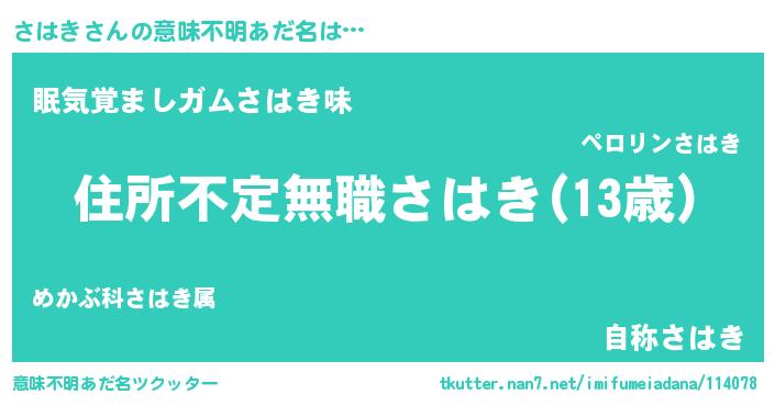| ヒーロー風カッコイイあだ名 | 『仮面サハダー』『慈愛の使者さはき』 |