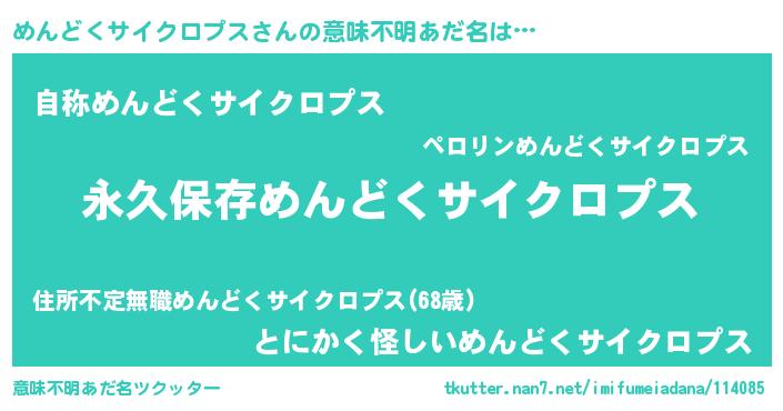 | 男性向けラノベタイトル風あだ名 | 『めんどくサイクロプスという概念が存在しない退屈な世界 』 |