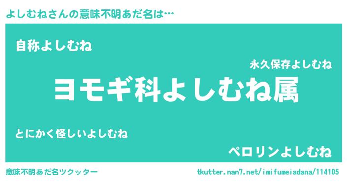 | 男性向けラノベタイトル風あだ名 | 『よしむね~年齢イコール彼女いない歴の魔法使い~』 |