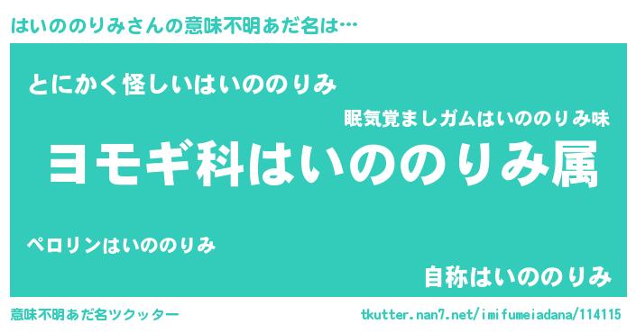 | 男性向けラノベタイトル風あだ名 | 『うちのはいののりみが世界を掌握している!』 |