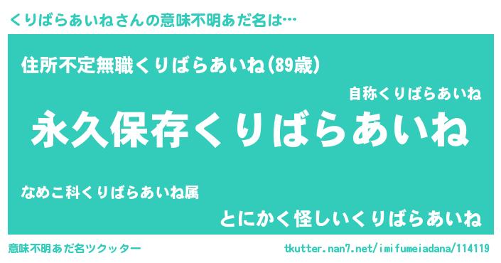 | 伝説のあだ名 | 『古より伝わる吟遊詩人くりばらあいね』 |
