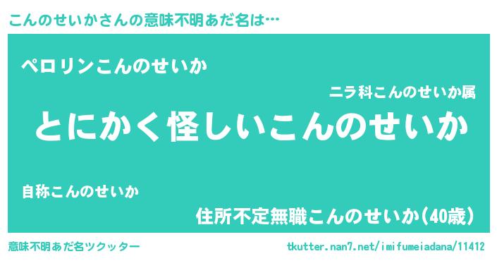 | 料理風あだ名 | 『こんのせいかの豆乳スープ』 |