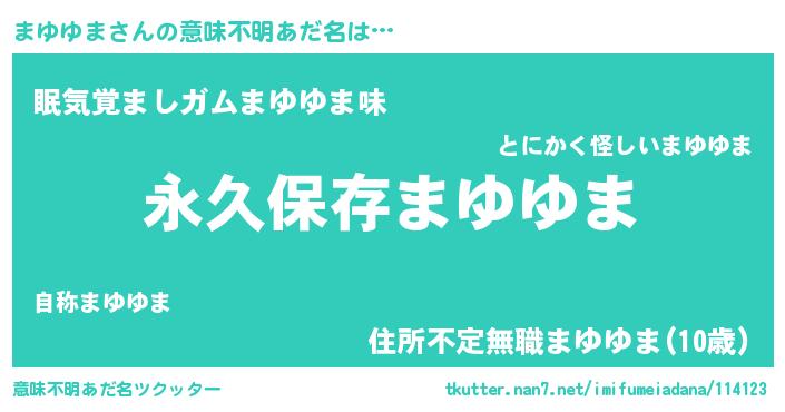 | ヒーロー風カッコイイあだ名 | 『ネオマユユマ』『正義の使者まゆゆま』 |