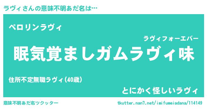 | 2回繰り返すあだ名 | 『べろべろ』『だらだら』『ラヴラヴ』 |