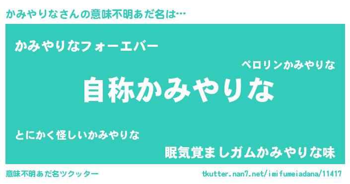 | ファンタジー風あだ名 | 『ゼカミトゥ』『エターナルカミヤリナー』 |