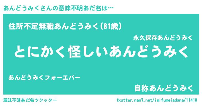 | ヘコむあだ名 | 『あんぷりん』『あんどうみく(震え声)』 |