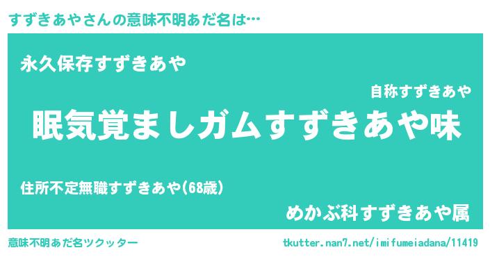 | ヘコむあだ名 | 『すずきあや(遠い目)』『すずぷりん』 |