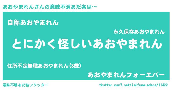 | 男性向けラノベタイトル風あだ名 | 『あおやまれんに滅ぼされるだけの簡単なお仕事です』 |