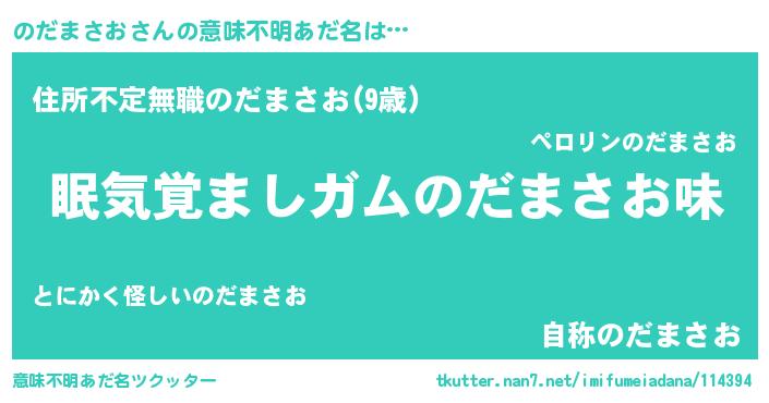 | 男性向けラノベタイトル風あだ名 | 『はたらくのだまさおさま!』 |