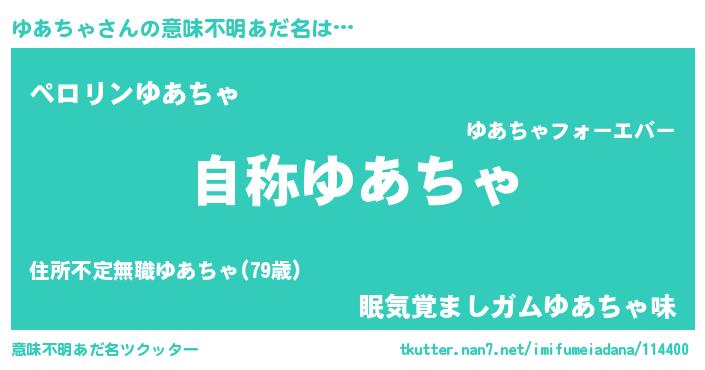 | 男性向けラノベタイトル風あだ名 | 『Re:ゆあちゃから始める異世界生活』 |