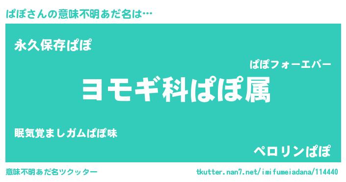 | ヒーロー風カッコイイあだ名 | 『ネオパポ』『スーパーパポ』 |