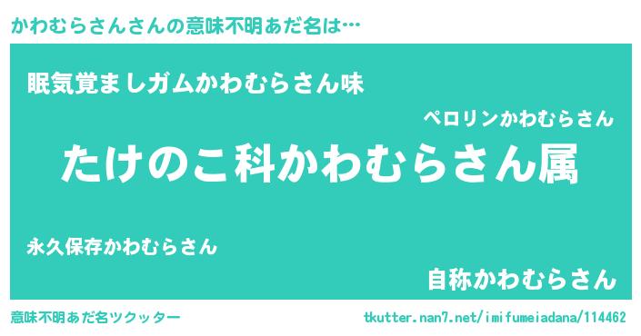 | ヘコむあだ名 | 『かわにゅー』『かわむらさん(爆)』 |
