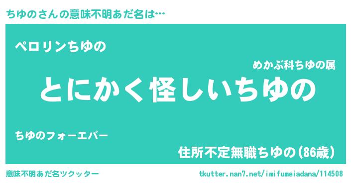 | 女子向けラノベタイトル風あだ名 | 『ちゆのは平凡を望む』 |