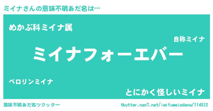 | 欧米人風あだ名 | 『ミイナクリステル』『トリンドルミイナ』 |