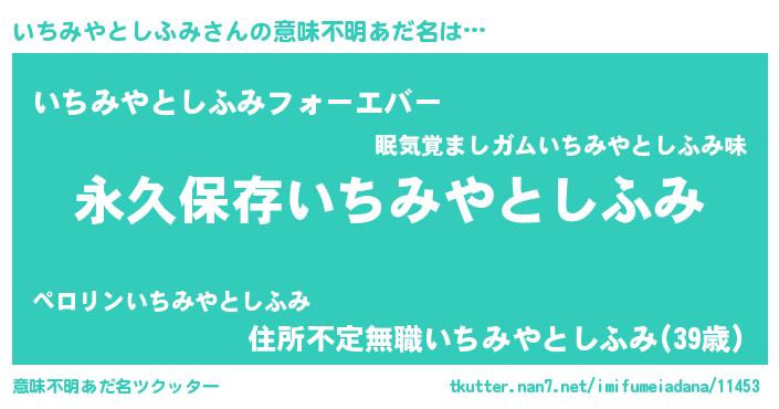 | 胡散臭い通販商品みたいなあだ名 | 『来世でも幸せになれる水素水…その名も「いちみやとしふみ」』 |