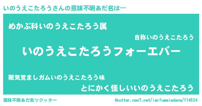 | 女子向けラノベタイトル風あだ名 | 『いのうえこたろうの雑貨屋さん』 |
