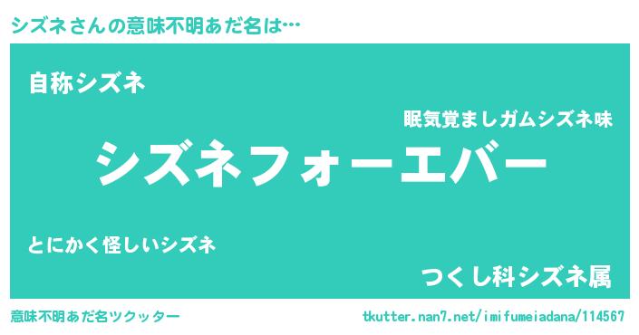 | ファンタジー風あだ名 | 『エターナルシズネー』『ゼシズトゥ』 |