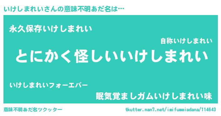 | 胡散臭い通販商品みたいなあだ名 | 『信頼と実績のペンダント…その名も「いけしまれい」』 |