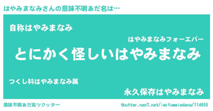 | ポケモン風あだ名 | 『ヒハヤミマナミ』『ハヤセウス』 |