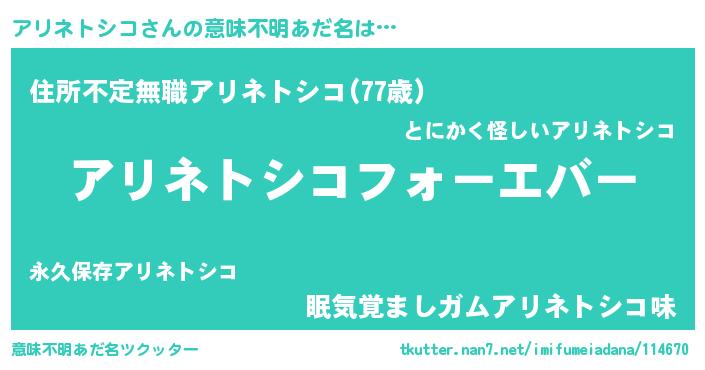 | ファンタジー風あだ名 | 『エターナルアリネトシコー』 |