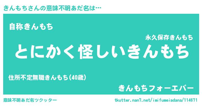 | 胡散臭い通販商品みたいなあだ名 | 『信頼と実績のサプリメント…その名も「きんもち」』 |