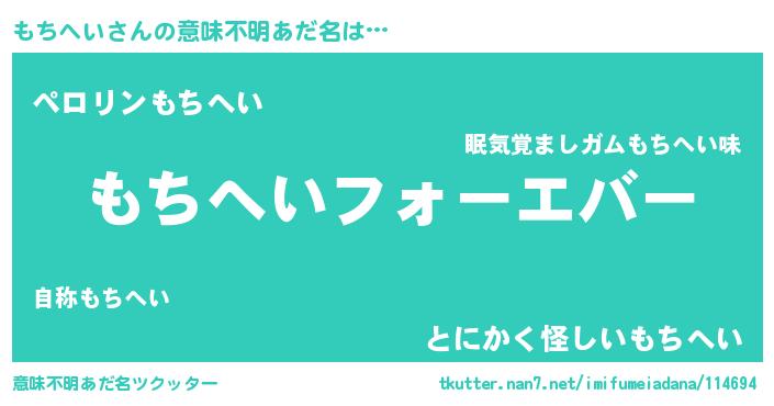 | 欧米人風あだ名 | 『もちへいクリステル』 |