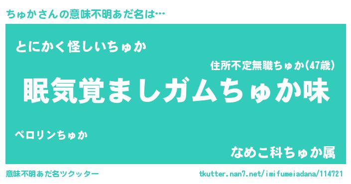 | ヒーロー風カッコイイあだ名 | 『正義の使者ちゅか』『暗黒騎士チュ』 |