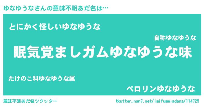 | 欧米人風あだ名 | 『ゆなゆうな・ステッグマイヤー』 |