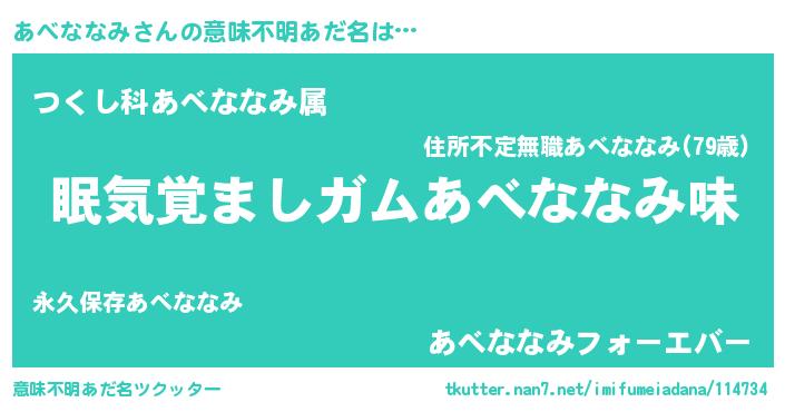 | 肩書あだ名 | 『あべななみ助教授』『あべななみ大統領』 |