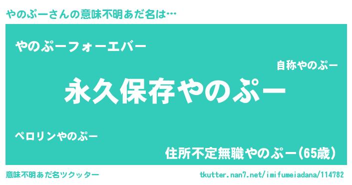| 伝説のあだ名 | 『古より伝わる暗殺者やのぷー』 |