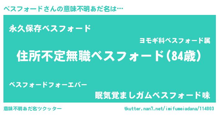 | ヘコむあだ名 | 『ベスフォード(震え声)』『なまこ酢』 |