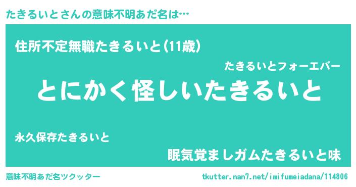 | 女子向けラノベタイトル風あだ名 | 『たきるいとは平凡を望む』 |
