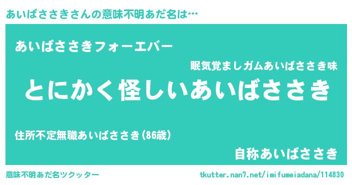 | ポケモン風あだ名 | 『ヒアイバササキ』『アイバダネ』 |