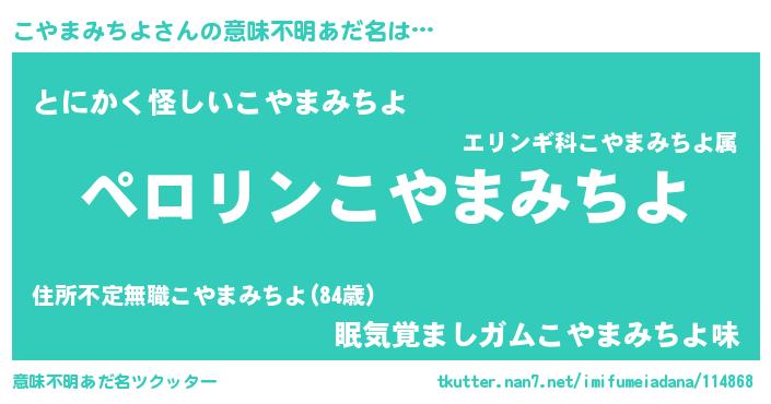 | ポケモン風あだ名 | 『コヤチュウ』『ヒコヤマミチヨ』 |