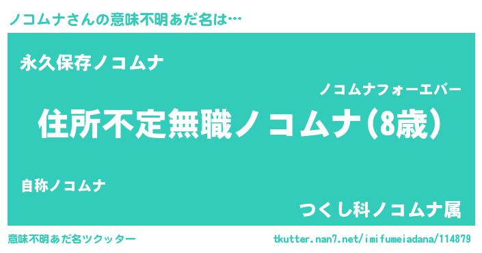 | 男性向けラノベタイトル風あだ名 | 『この素晴らしい世界にノコムナを!』 |