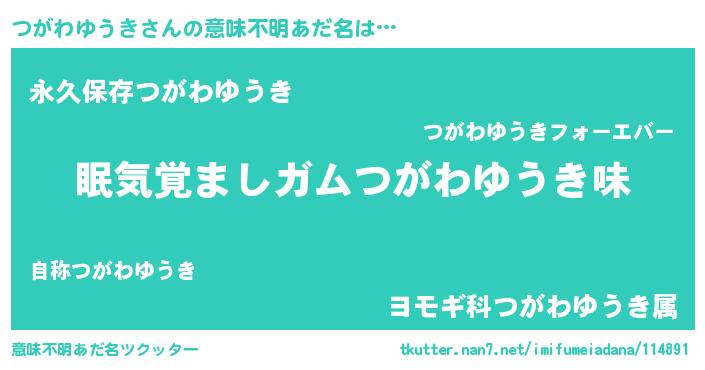| ヘコむあだ名 | 『つがわゆうき(笑)』『レバニラ』 |