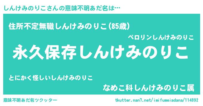 | 男性向けラノベタイトル風あだ名 | 『しんけみのりこという概念が存在しない退屈な世界 』 |