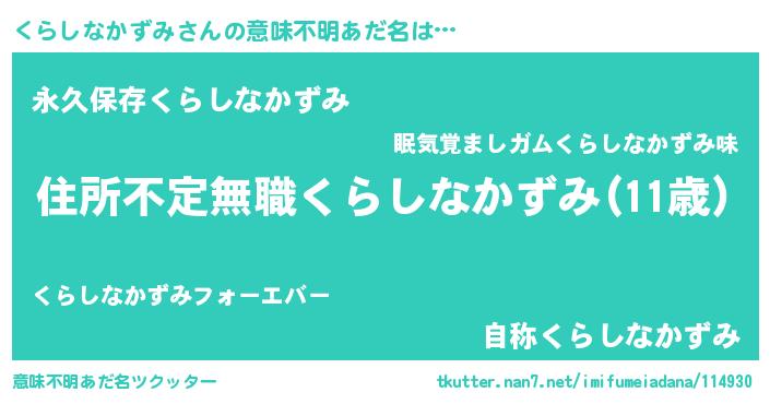 | ヘコむあだ名 | 『くらしなかずみ(笑)』『なまこ酢』 |
