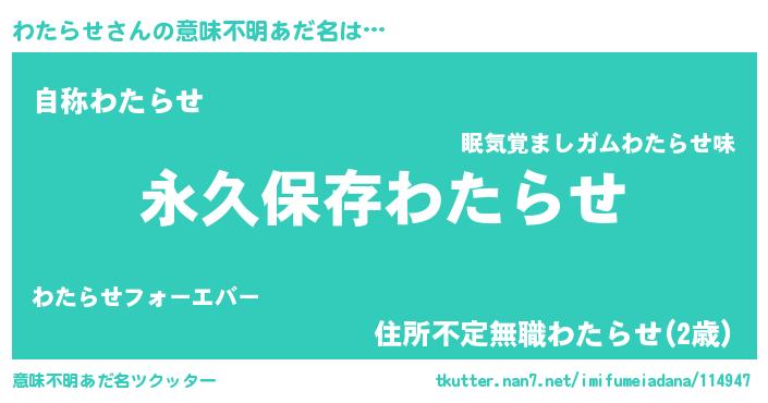 | 欧米人風あだ名 | 『アンジェラ・わたらせ』 |