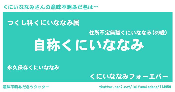 | 男性向けラノベタイトル風あだ名 | 『Re:くにいななみから始める異世界生活』 |