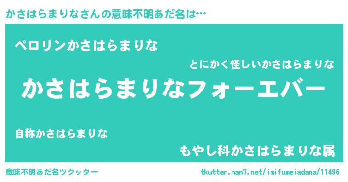 | 欧米人風あだ名 | 『かさはらまりな・ステッグマイヤー』 |