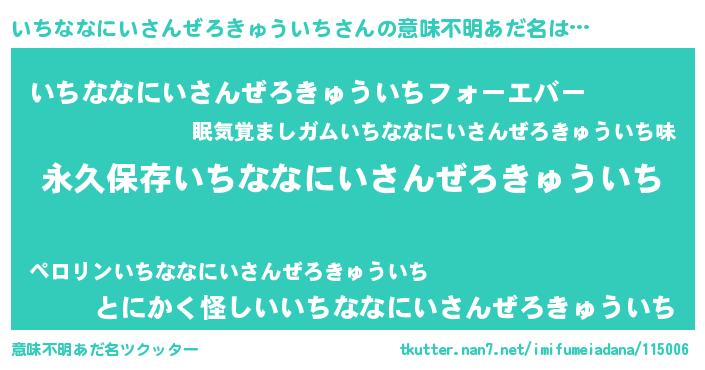 | 欧米人風あだ名 | 『アンジェラ・いちななにいさんぜろきゅういち』 |