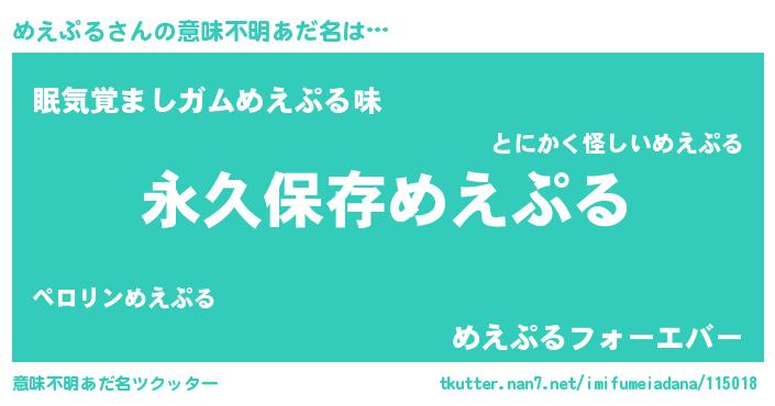 | ヘコむあだ名 | 『めえぷる(小並感)』『酢こんぶ』 |