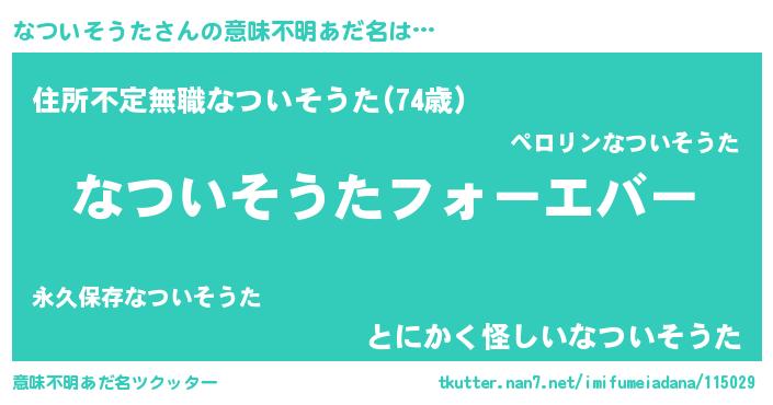 | 男性向けラノベタイトル風あだ名 | 『やはりなついそうたの青春ラブコメはまちがっている 』 |