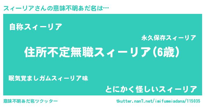 | ヘコむあだ名 | 『スィお』『スィーリア(遠い目)』 |