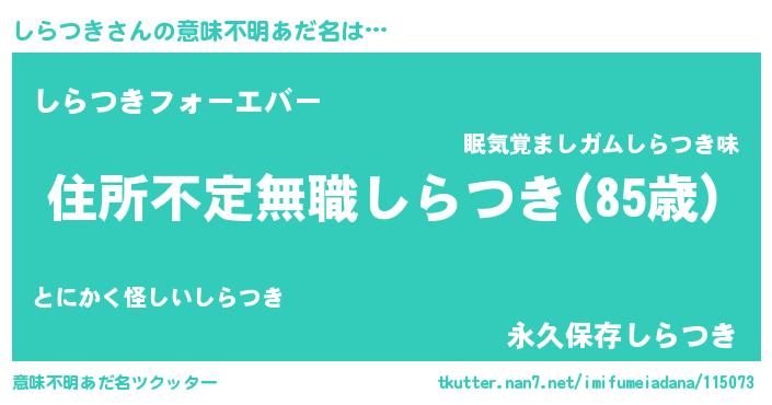 | 胡散臭い通販商品みたいなあだ名 | 『あなたにだけ特別に提供する世界で10本だけ現存している希少なブランデー…その名も「しらつき」』 |