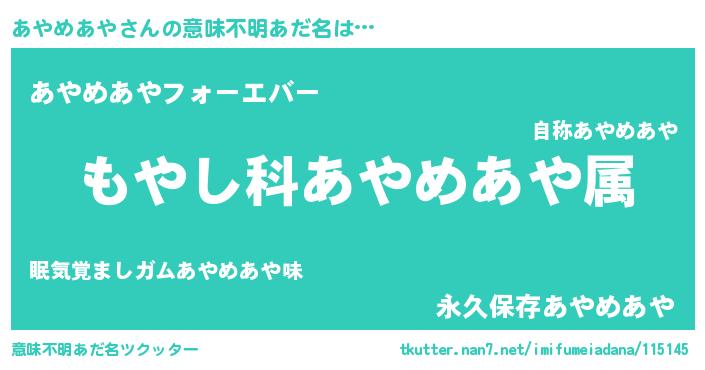 | ポケモン風あだ名 | 『アヤキング』『アヤメダネ』 |
