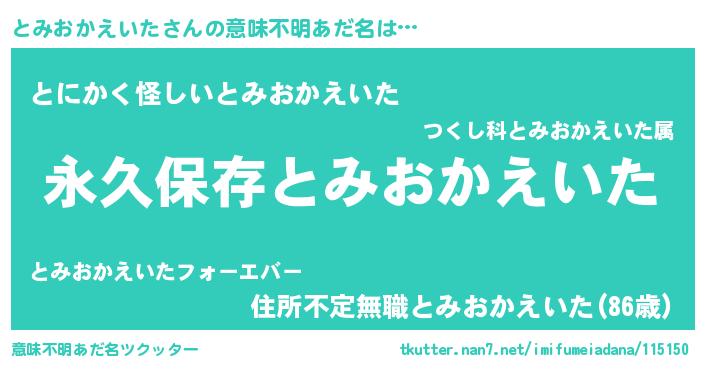 | ヘコむあだ名 | 『とみおかえいた(苦笑)』『とみ太郎』 |