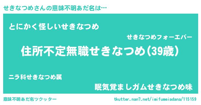 | 欧米人風あだ名 | 『アンジェラ・せきなつめ』 |