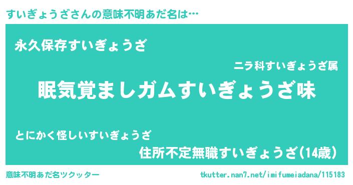 | ヘコむあだ名 | 『すいぎょうざ(震え声)』『すいを』 |